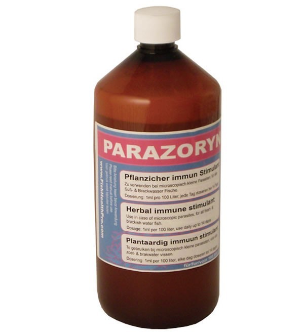 - Parazoryne is effectief tegen parasieten als kieuw/huidwormen, Chilodonella sp., Trichodina sp., witte stip, Costia en peperstip.