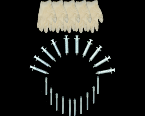 Inhoud: – 4 spuitjes 2ml – 4 spuitjes 5ml – 2 spuitjes 10ml – 10 naalden – 5 paar Medicament handschoenen